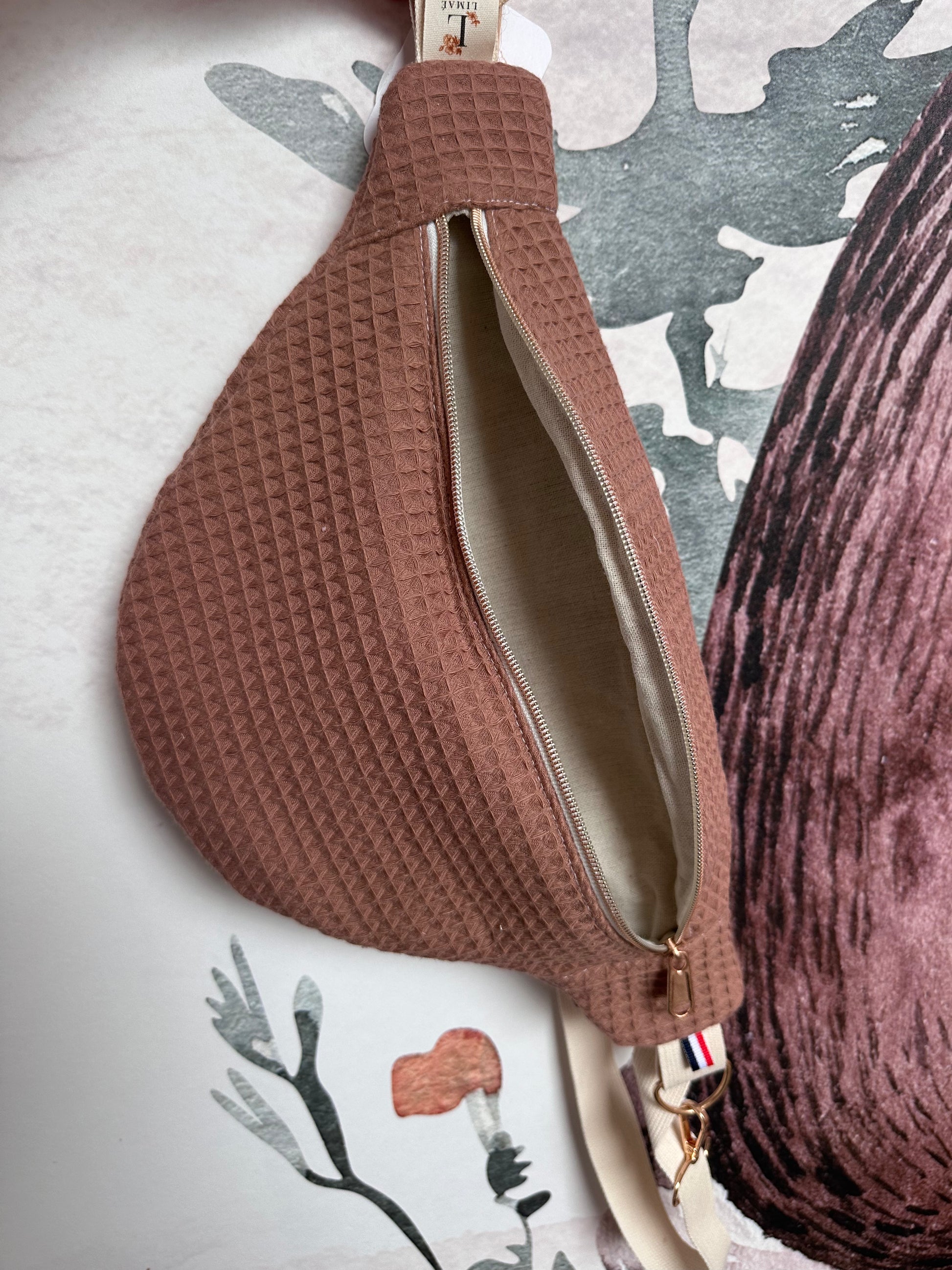 La tirette est plate ( comme sur le motif champêtre ) pour tous les sacs banane et non ronde.